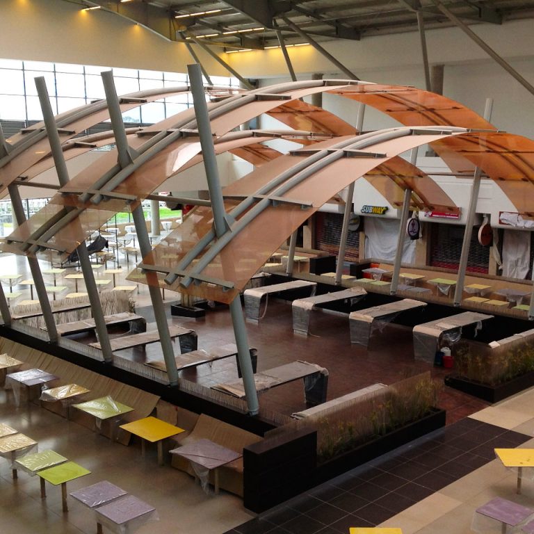Cálculo, diseño, fabricación y montaje de estructura sombrillas para plazoleta de comidas en tubería estructural, con reforzamiento de entrepiso en vigas de acero del C.C. Titán Plaza.