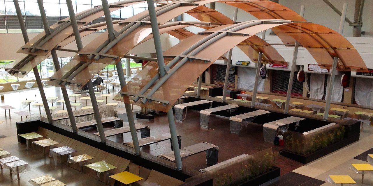 - 300 m2. de cubierta interior con diseño arquitectónico innovador ubicado en el centro de la plazoleta de comidas.